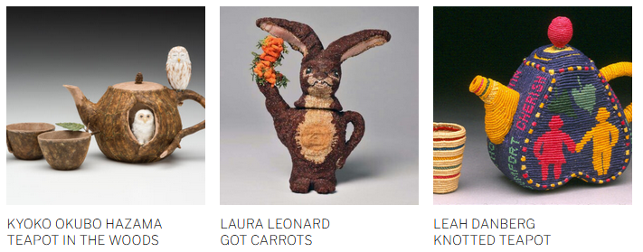 Образы варьируются от отсылок к поп-культуре и высокому искусству, например, «Чайник/Микки Маус II» Кейт Андерсон, выполненный в технике узлов, в стиле Уорхола и Харинга (2004), до абстрактной формы и изысканного цвета «Рассвета и тонкого чая» Йоха Риччи (2010), выполненного вручную в технике окрашивания сосуда.