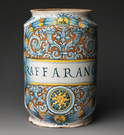 Вероятно, мастерская Джакомо Манчини (Эль Фрате), аптечный сосуд (Альбарелло), 1573 год. Музей «Метрополитен».