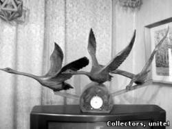 В квартире Антонова нельзя не обратить внимание на деревянные рамочки, подставочки, всевозможные обрамления, не говоря уже об изящных барельефах и скульптурах. Изумительны фигуры животных – аист, заглатывающий извивающуюся рыбку; группа лебедей в полете; огромный, раза в три превышающий естественные размеры, петух...